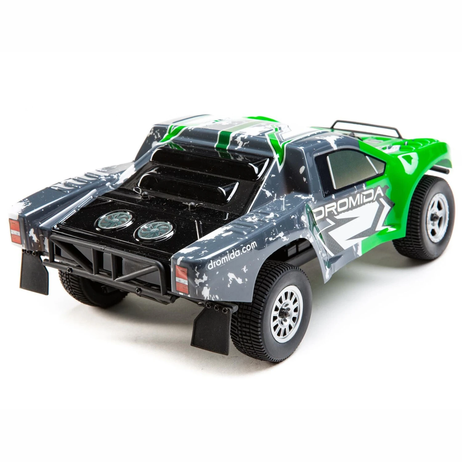 Like full-size short course trucks that tangle for the top spot at indoor arenas as well as outdoor dirt tracks, the radio-controlled Dromida® 1/18 scale SCT Short Course Truck 4WD will race almost anywhere. Its compact size can turn your home’s hallways into the setting for exciting racing at any time of the day or night, regardless of the weather or season. The rugged design is also ready to take on outdoor challenges, whether on gravel, short grass, pavement or concrete. All-weather electronics even let you run safely in the rain, mud, and snow.