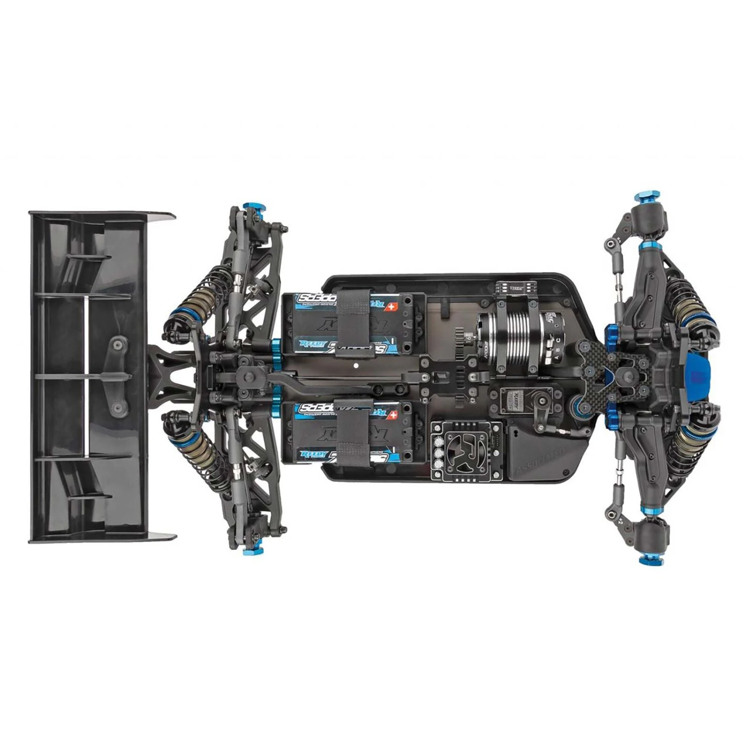 - New chassis layout featuring two shorty-style only battery configurations. Both configurations include a centrally mounted center differential and in-line center driveshafts for superior drivetrain efficiency and equalized chassis balance.