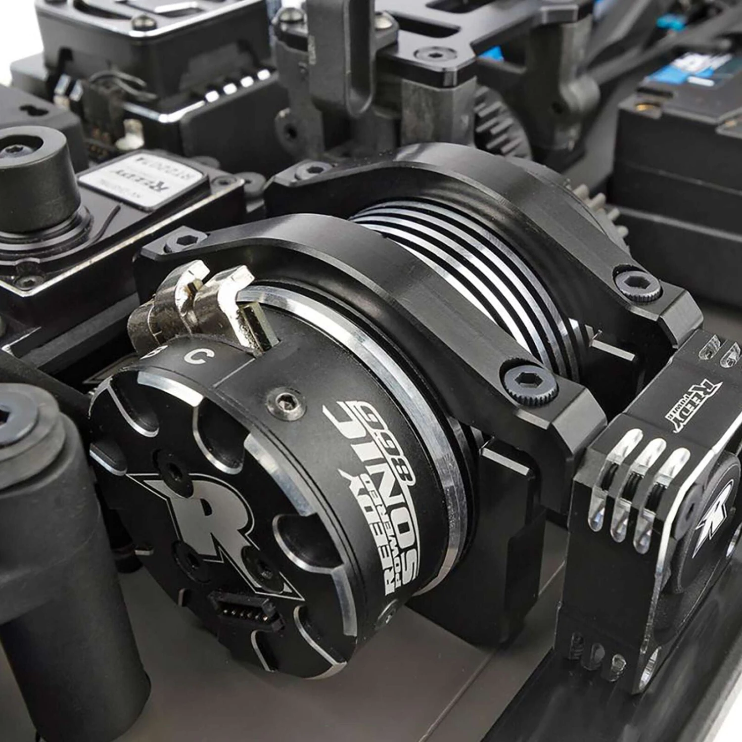 - New gearboxes are specific to front and rear with larger 6x13x5 mm flanged bearing sizes resulting in longer life of ring and pinion gears. The front gearbox has an inclined pinion gear angle to straighten the center driveshaft for increased drivetrain efficiency and reduced phasing and vibration while the rear gearbox remains flat.