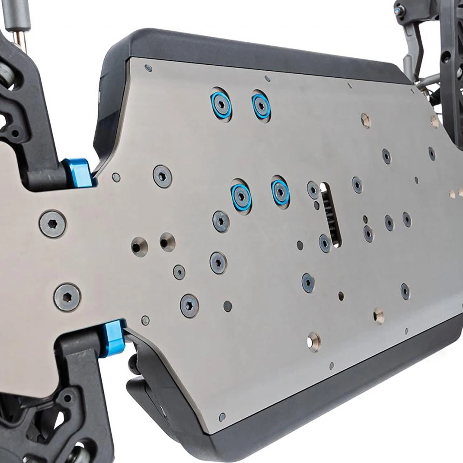 - New rear chassis brace is mounted centrally to the gearbox, which reduces material fatigue, centralizes shear forces, and improves the life of rear end drivetrain parts while allowing for three different chassis flex options
