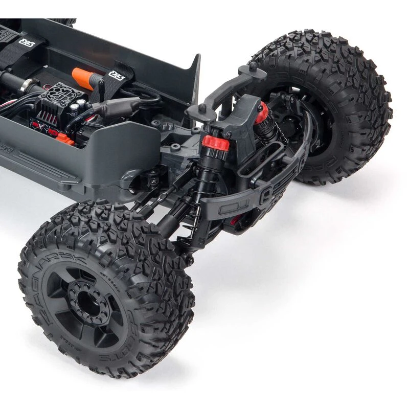 ARRMA® now powers the BIG ROCK™ 4X4 3S BLX with a brushless system featuring its BLX100 ESC and the Spektrum™ Firma™ 3200Kv brushless motor. The combination provides incredible torque, acceleration and speed. The transmission and chassis are ruggedly engineered to take full advantage of the electronics’ power.