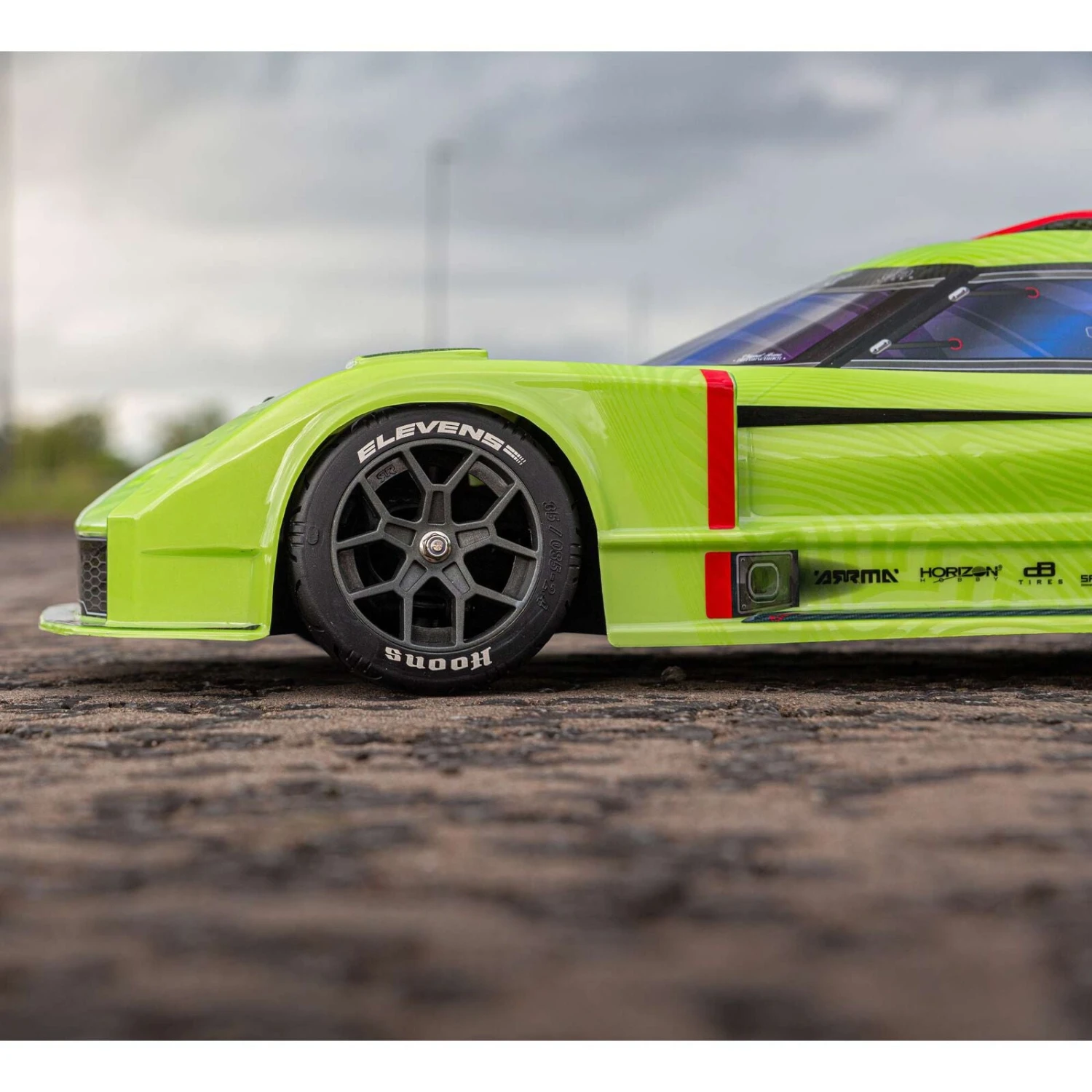 While you’re maximizing the speed potential of the powerful Spektrum™ Firma™ 3660 3900Kv brushless motor, high and low downforce wings on the aerodynamically tuned body help keep your tires glued to the surface. The dBoots® Hoons Elevens vented all-road tires are mounted on tough, gun-metal colored nylon wheels and deliver incredible traction in all surface conditions, while a large rear double diffuser reduces turbulence and drag.
