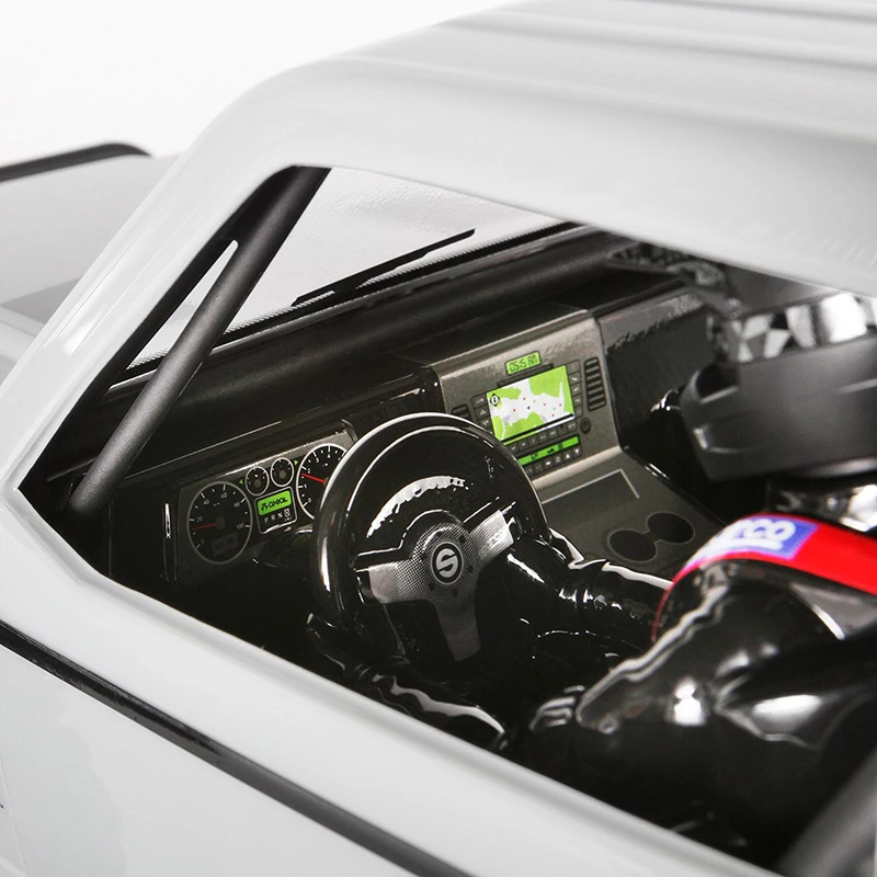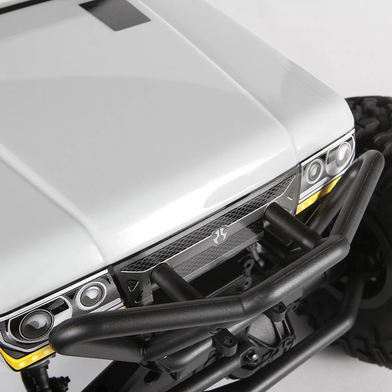 - Body: Retro styled SUV body with realistic driver figure complete with race suit and three interchangeable helmets, motocross, open skull face or motorsport version, body is also compatible with Wraith, AX10 and SCX10 chassis