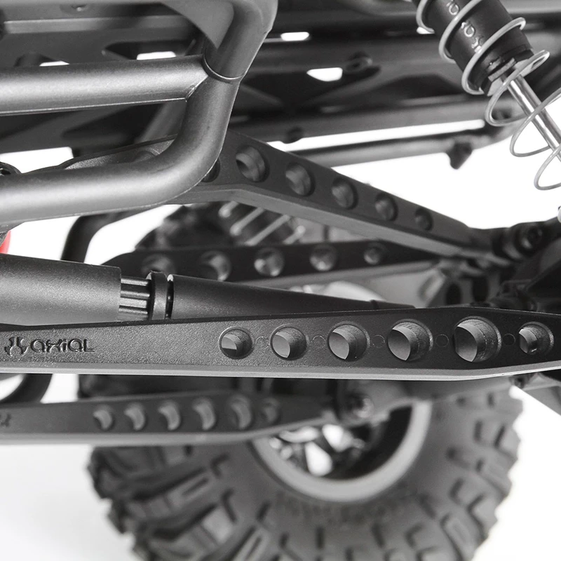 The Axial Wraith™ Spawn is packed with performance features. This full bodied version Wraith retains many of the components that made this vehicle famous. The virtually bulletproof AR60 OCP axles are ready take the Spawn through its paces whether blasting through the wide open desert or hammering its way through the toughest rock trails. The Ripsaw™ 2.2 tires are a proven true grip standard, wrapped around industry proven Method IFD™ beadlock wheels. Whether you are rock racing or just backyard bashing, the Wraith™ Spawn is ready for action.