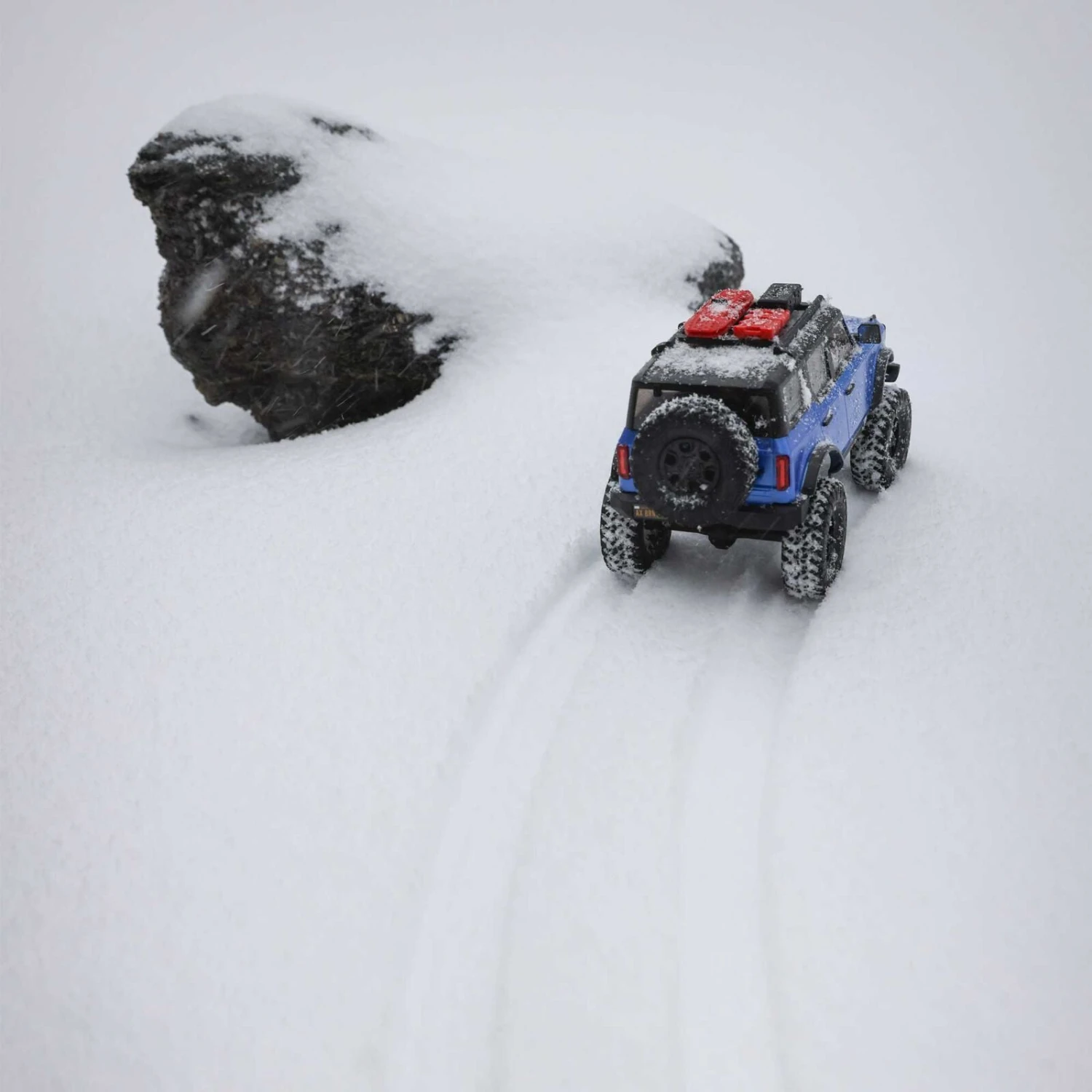 The SCX24™ Ford Bronco 4WD makes any spot the perfect setting for RC adventures. If you’re stuck at work, go crawling on your desk. A messy room becomes an ideal obstacle course. Test your skills on an indoor “crawl course table” or take your SCX24™ Ford Bronco outdoors, where its water-resistant electronics are safe from the elements. You can set up an exciting trail in minutes with a few holes, twigs, and rocks.