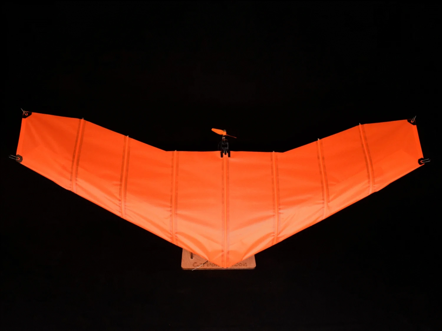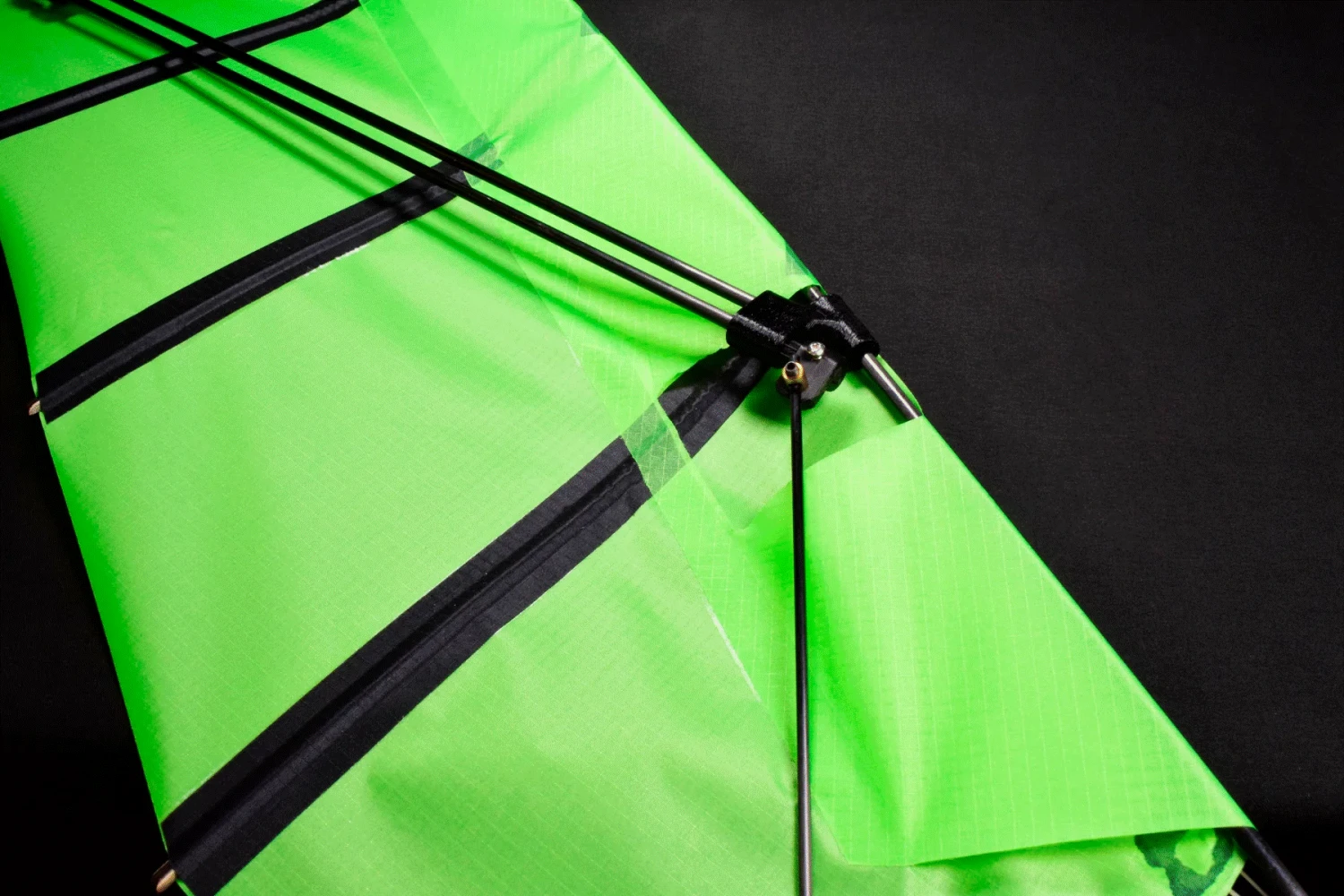 The lightweight and robust frame is mostly made from carbon fiber, that supports a colorful, high strength rip-stop fabric sail. The airfoil shape is provided by specially designed ply battens that don’t lose their shape. The fabric we utilize is an advanced material designed in the USA for full scale sail boat spinnakers. The fabric and the frame design combines to make a VERY durable aircraft.