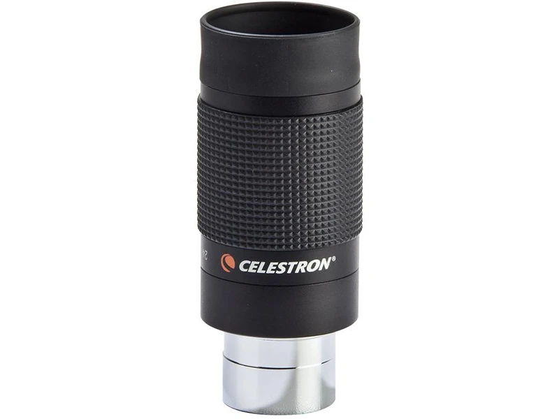 The amazingly versatile Celestron 8 mm – 24 mm Zoom Eyepiece allows you to choose from a variety of magnifications in a flash! Simply grip the rubberized barrel and turn it slowly while looking through the eyepiece, and then pick the best power for the object you are observing. Alternatively, you can use the lowest magnification (24 mm) to find an object and center it in your field of view, and then increase the power until the desired view is achieved. It is fast and easy, and lets you examine any object at various magnifications without requiring you to physically change eyepieces.