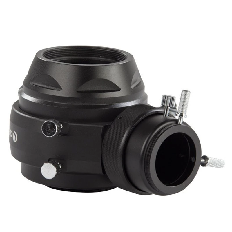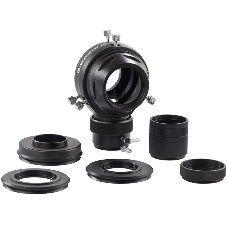 The Off-Axis Guider is an essential astroimaging accessory for long focal length telescopes that require the most accurate guiding possible. The Celestron Off-Axis Guider uses a prism to intercept a small portion of the telescope’s focal plane (outside the field of view of the main imaging camera) to locate a guide star. Any movement seen by the guide star will be the exact same movement seen by the imaging camera. Guiding this way will correct for tracking errors, as well as opto-mechanical errors or flexure. The result: better astroimages with pinpoint round stars.