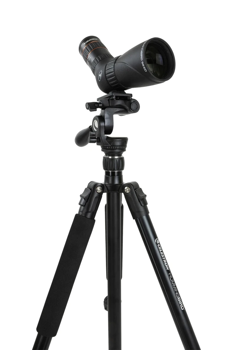 The Hummingbird tripod is an excellent choice for those seeking a lightweight yet stable platform for a spotting scope, binocular or camera. With four leg sections, three leg angles and an adjustable center column, the tripod can be set in multiple configurations to get the exact height or stance needed for your terrain and conditions. Use the panning handle and tension knob to scan across the horizon in smooth motions and follow your subject as it moves. The Hummingbird is the perfect tripod for any outdoor excursion from bird watching to stargazing and everything in between.