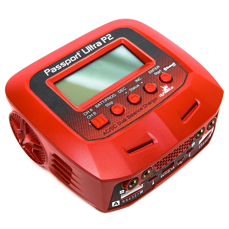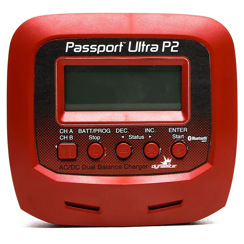 The Dynamite® Passport™ P2 AC Plus 2 Port AC/DC Multi-Charger represents the pinnacle of premium, high-performance chargers. With dual 100W output capability, the Passport P2 can charge Li-Po batteries in half the time it takes lower wattage/amperage chargers. In addition, you get the full gamut of charging features, including the ability to charge virtually all battery types and intuitive LCD display.