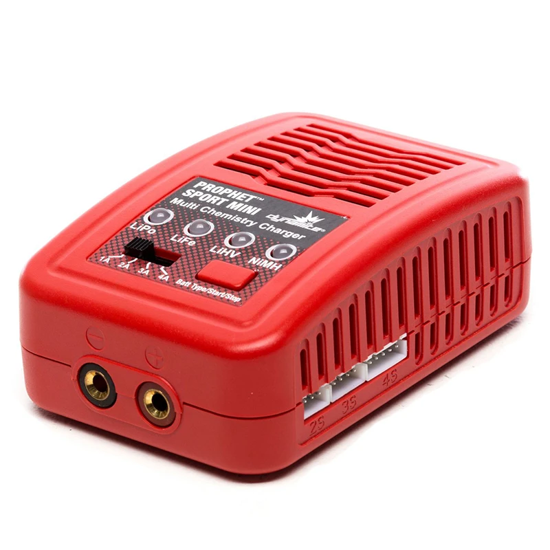 The Prophet Sport Mini charger is an affordable and versatile AC powered charger that can be used to charge car, truck, boat, aircraft and quad batteries. With the ability to charge 2S, 3S and 4S Li-Po batteries as well as 6-8 cell NI-MH batteries at selectable charge currents, the Prophet Sport Mini combines quality, value and performance to give you a convenient and easy tool to handle all of your charging needs.