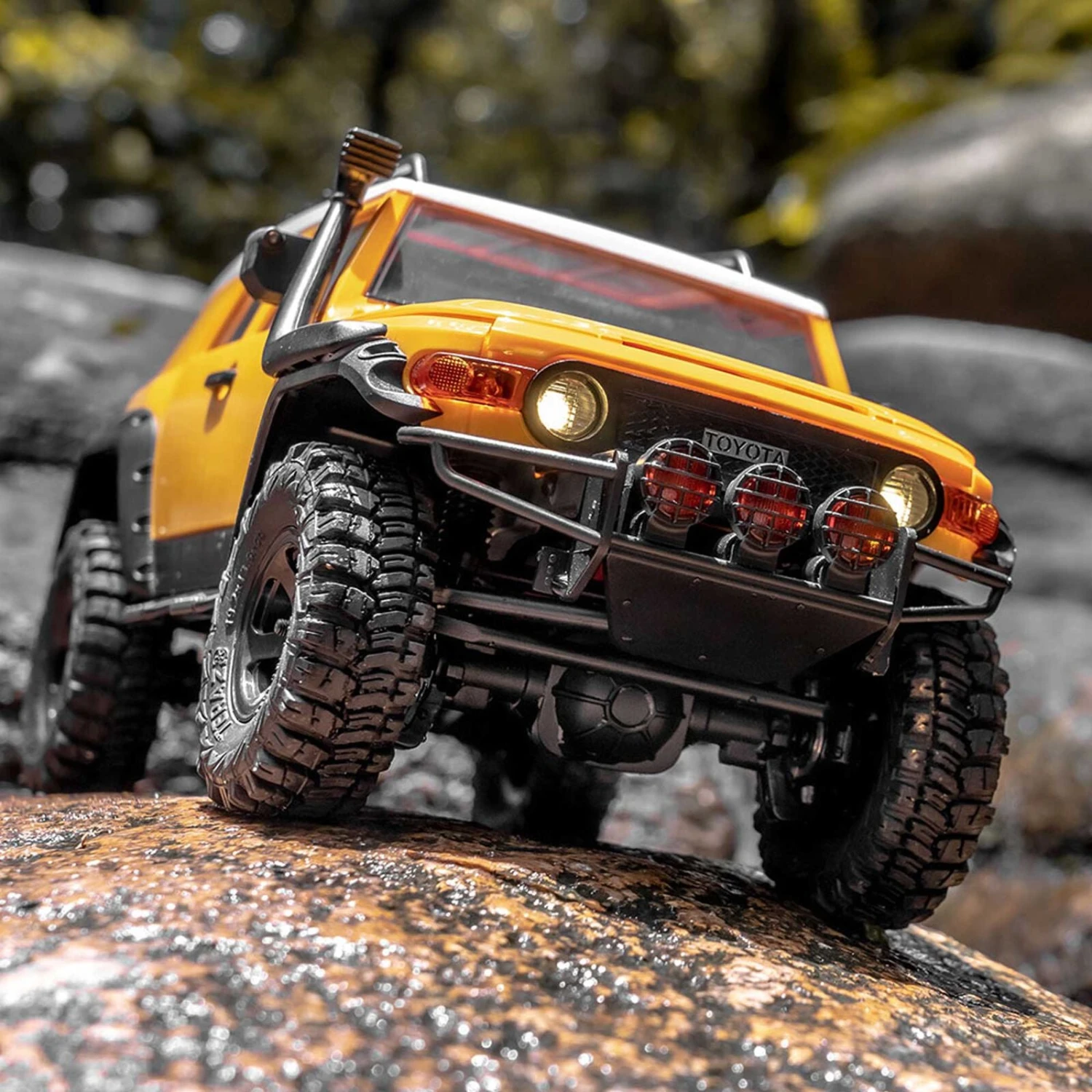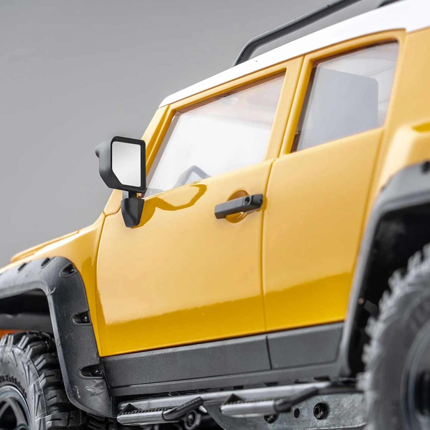 Also like the full-scale SUV, the FMS Toyota FJ Cruiser boasts an impressive array of scale lighting functions. Behind the transparent lenses of the front and rear headlights are working LEDs for day or night driving. Triple fog lights are mounted to the front bumper. Reversing lights and operational turn signals on the side door mirrors complete the set.