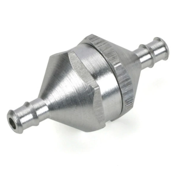 This is the Large Scale model. Constructed of two threaded aluminum parts which separate for ease in cleaning. Works for both gas and glo fuels. 130 micron mesh screen filter to filter out the smallest of particles and an o-ring to properly seal against leakage.
