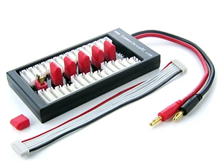 This Paraboard lets you charge and balance up to six lipo batteries at once! This board features Deans-type plugs for your batteries’ main leads and JST-XH balance plugs ranging from 2S to 6S. They plug right into most popular models of 6S lipo balancing chargers that have 7-pin balance ports with 2.5mm pin spacing.