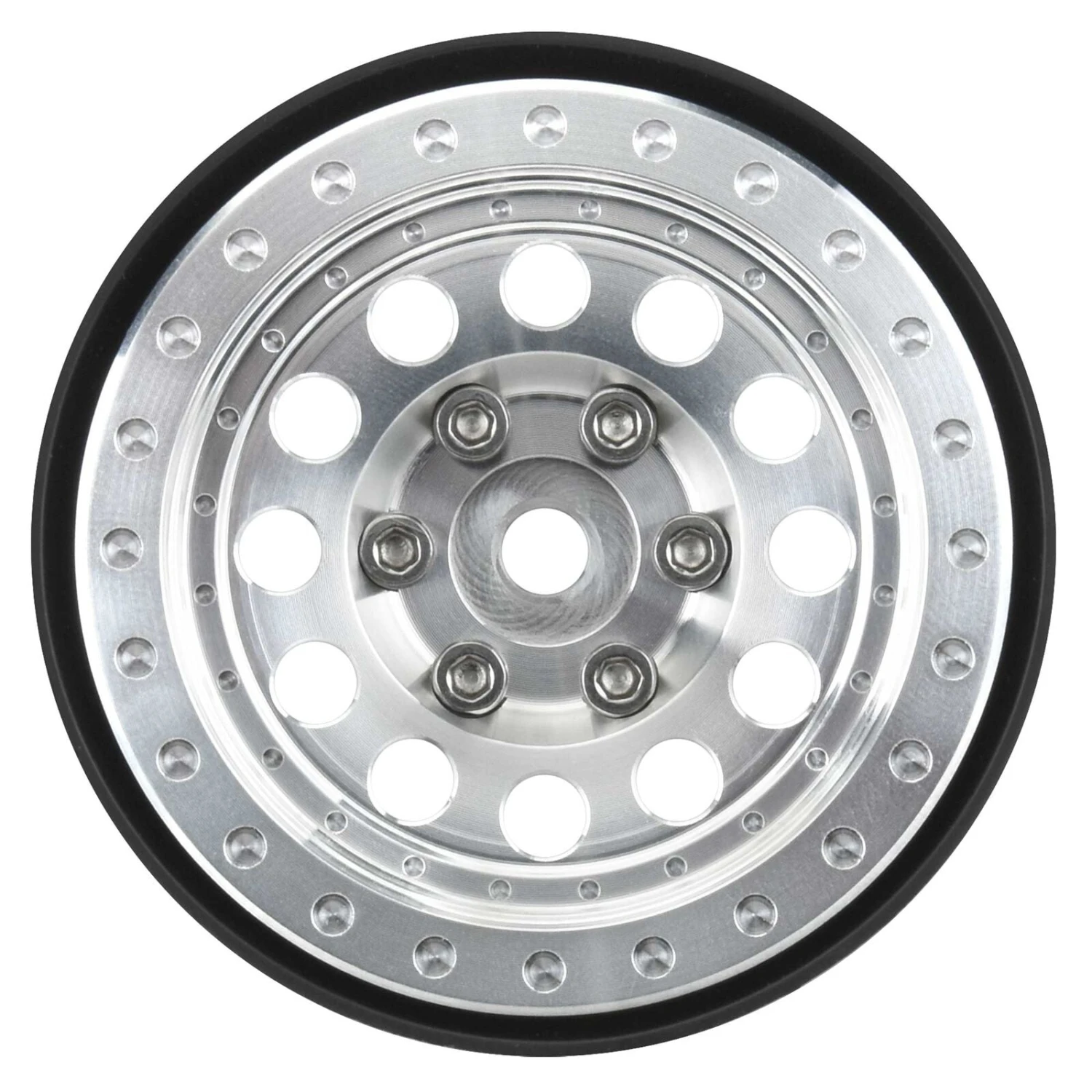 The face of the Rock Shooter has been CNC machined in the USA to exacting tolerances and precision finishes that are second to none! These look just like real wheels! The unique 3-piece wheel design bolts together in the back and locks on to Pro-Line’s incredible list of 1.9″ Crawling Tires the same way as Pro-Line’s Impulse 1.9″ plastic wheel. The overall wheel width and wheel offset are the same as Pro-Line’s Impulse 1.9″ plastic wheels, so you know they will fit your truck and look good doing it.