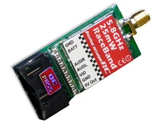 This ImmersionRC Audio/Video Transmitter provides a clean and powerful A/V transmission signal which is 100% compatible with all Fat Shark and Immersion RC products. Strong penetration and a locked in signal gives you the best picture on 5.8GHz all in a lightweight, efficient, 25mW 5.8GHz transmitter package.