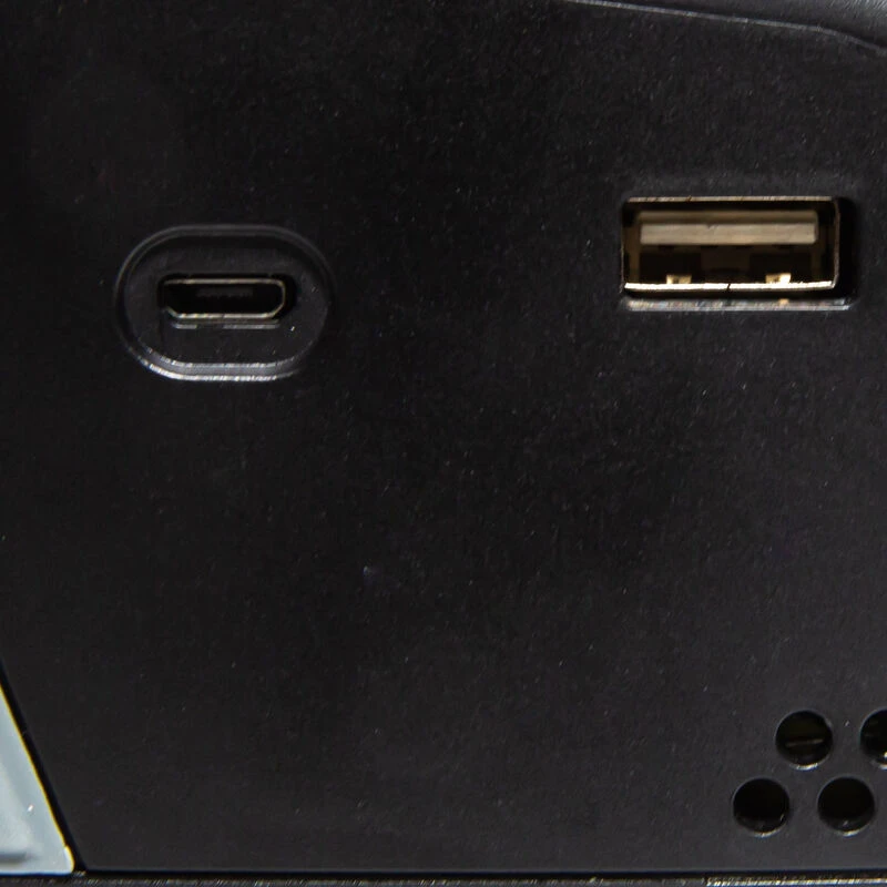 - USB input and output ports are included for updating firmware and charging secondary devices