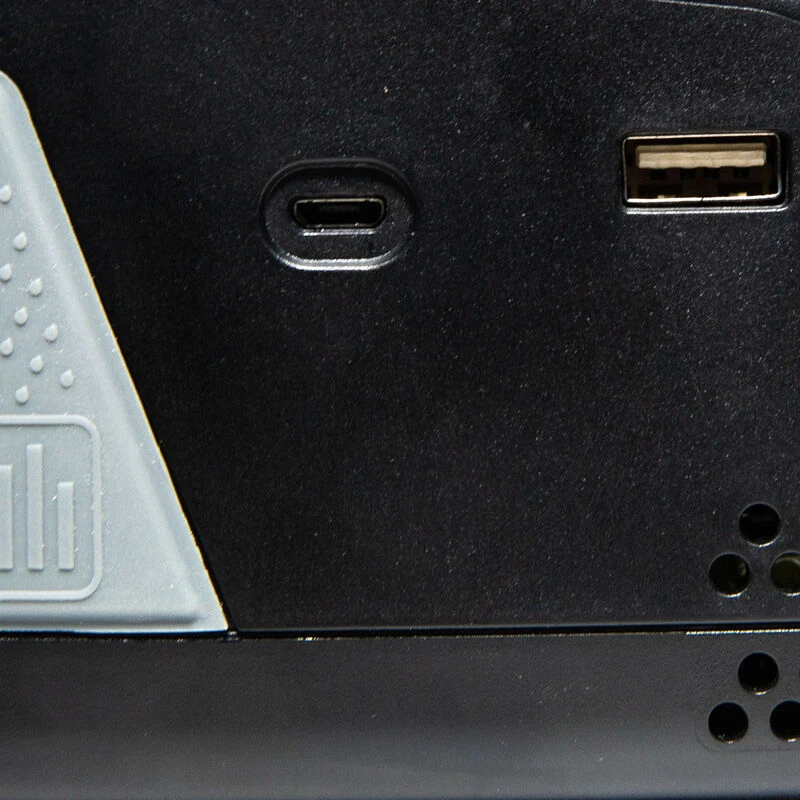 - USB input and output ports are included for updating firmware and charging secondary devices