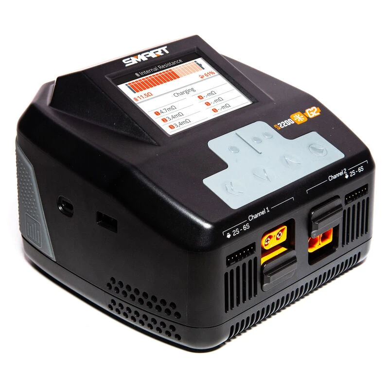With up to 200W power per channel or 380W on one channel for fast charging, plus the ability to charge batteries on either the IC3® or IC5® integrated output ports, the S2200 charger delivers a versatile and truly hassle-free charging experience. The S2200 charger works with virtually any RC battery and is backwards compatible with EC3â„¢ and EC5â„¢ connectors. Use it together with Smart G1 or G2 batteries and you’ll be amazed by its incredible functionality and performance.