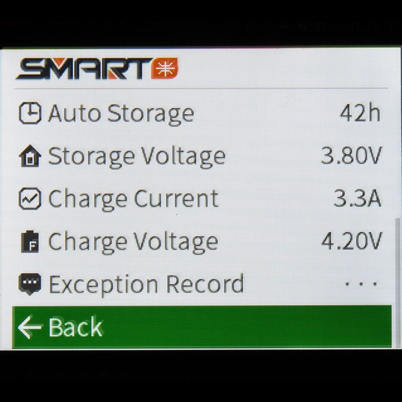 When used with a Spektrum Smart battery, you will be able to see and adjust many of the settings only available with a Spektrum Smart charger. This includes one connection for balance and battery level checking, and providing records like number of cycles, internal battery temperature and exception reports. You can even adjust Smart battery settings right from the XBC100.