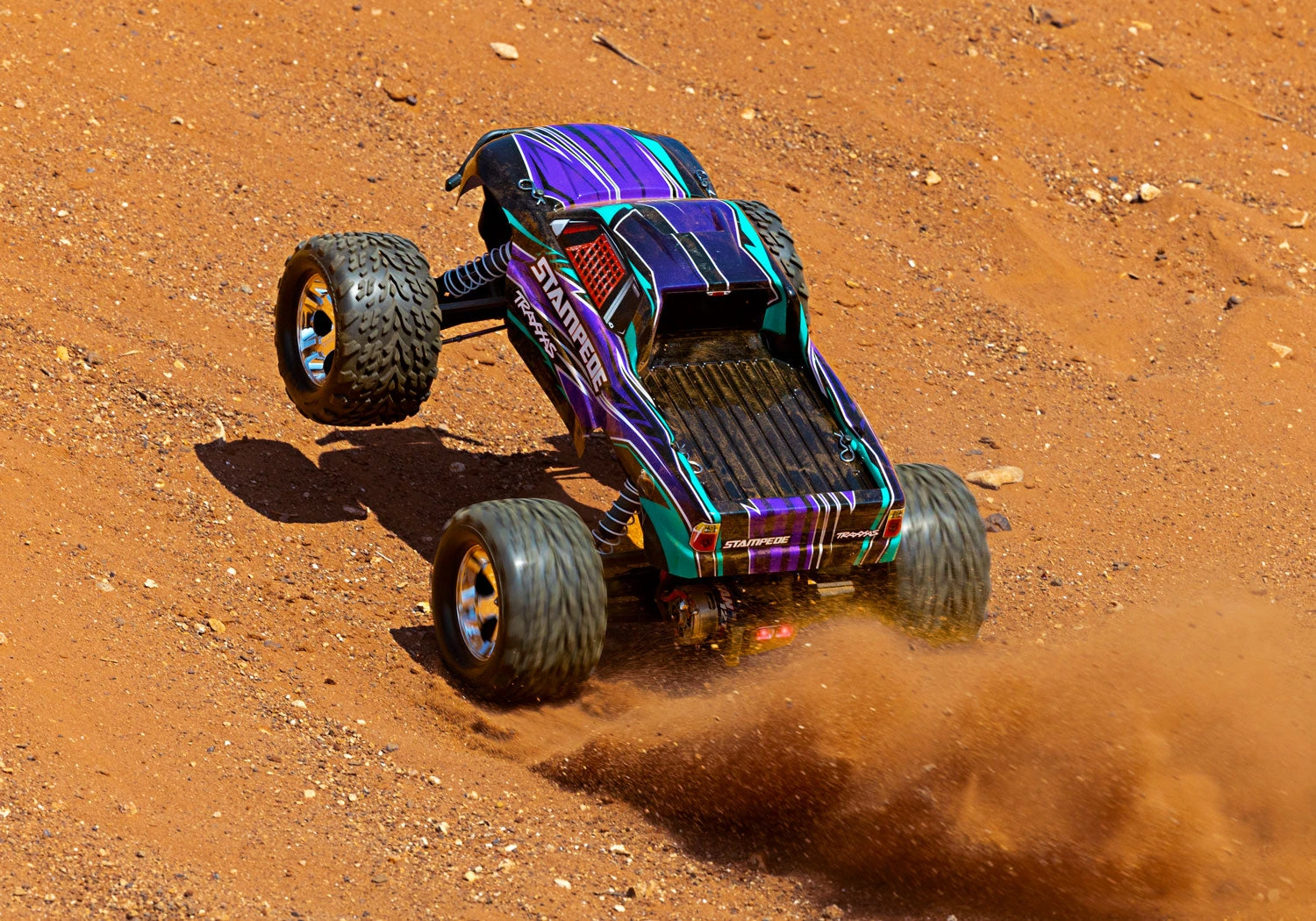 The Stampede’s legendary ruggedness has made its name synonymous with off-road fun. With a top speed of 30+ mph* and drive-over-anything ground clearance, Stampede rips through grass and powers over curbs. Pour on the throttle and the Titan® motor’s massive torque raises the front wheels skyward for dirt-roosting wheelies and high-power jumps. Mud, puddles, and snow don’t stand a chance against this high-octane monster truck thanks to Traxxas’ waterproof electronics. Add more excitement to your RC adventures with the quality and performance of the Traxxas Stampede.
