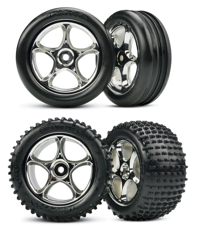 - Tires come pre-glued on mirror-chrome five-spoke Tracer™ wheels