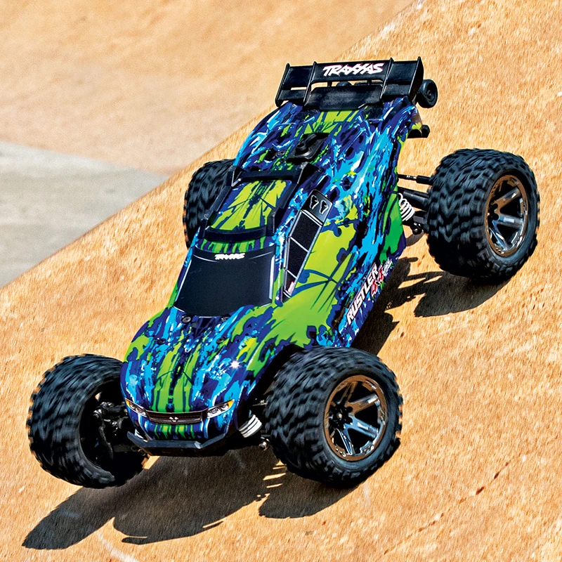 The all-new Rustler® 4X4 VXL is a hard-charging wheelie machine that captures the speed and classic style of the number-one-selling Rustler and injects it with brutal 4-wheel drive performance, increased durability, and even more fun! Bury the throttle and the Rustler 4X4 VXL launches its front wheels skyward as it shreds the ground underneath. Beneath the sleek clipless body, the heavy-duty driveline delivers extreme Velineon® brushless horsepower. The larger Talon™ EXT wheels and tires provide versatility and grip for any terrain, from backyard trails to concrete skate parks. Rustler 4X4 VXL destroys convention to become the new performance and fun standard for 4X4 stadium trucks!