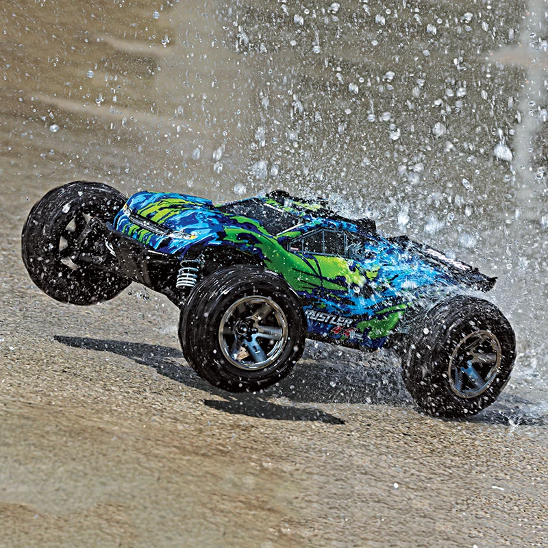 Velineon® equals extreme brushless horsepower. The power system is optimized for speed and acceleration, from the patented Traxxas High-Current connector to the custom-wound 4-pole motor. The system delivers the ultimate in efficiency, speed, and run-time along with refined control. It’s brushless performance the Traxxas way: wicked fast and easy to use. - Waterproof Electronics