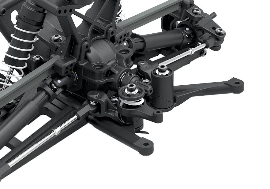 No part of the Slash 4X4 was overlooked in the quest for durability, precision, and performance. The dual-bellcrank design pivots smoothly in the harshest conditions, and an integrated cam-type servo saver protects the servo gears from crash impacts without sacrificing steering precision.