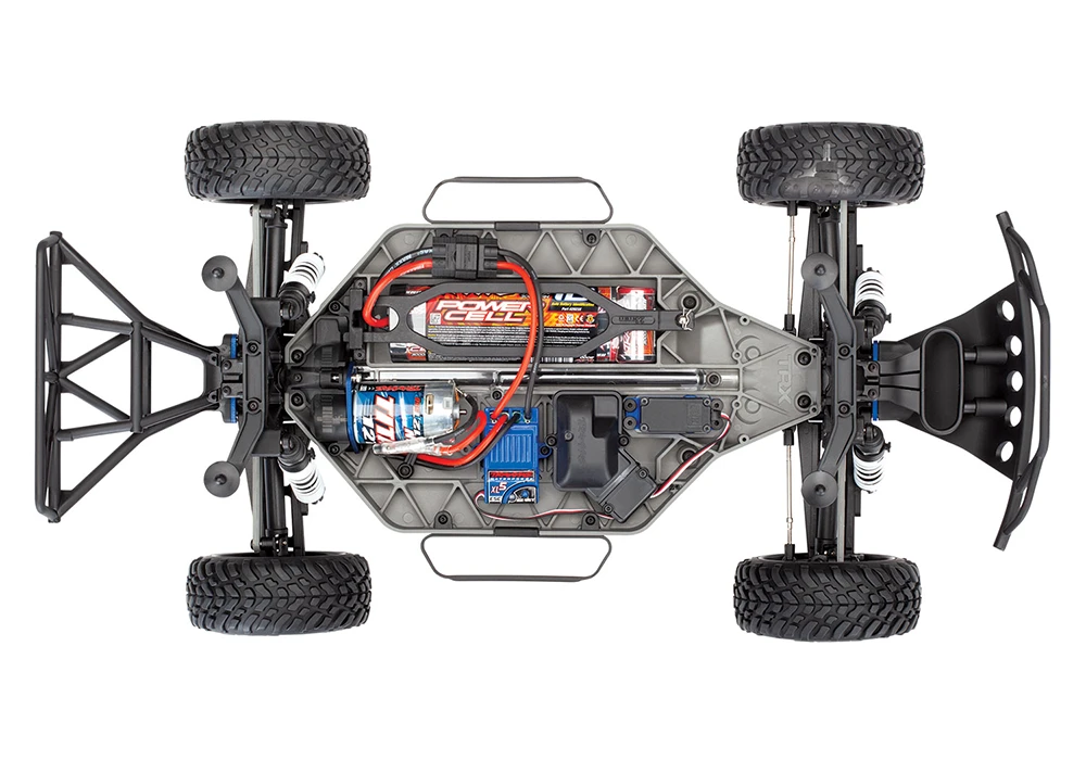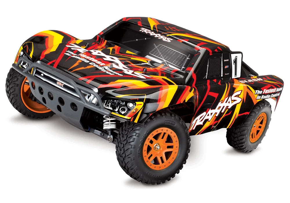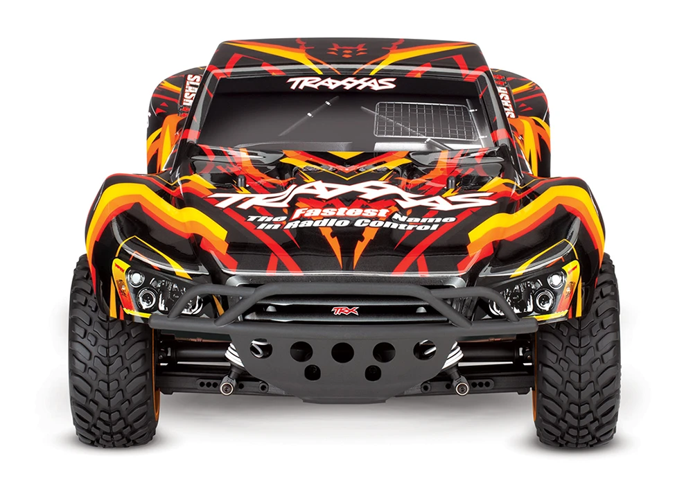 Slash includes a genuine iD-equipped Power Cell NiMH battery to make sure you experience all the performance that’s been engineered into your Traxxas model. Accessory Traxxas iD chargers (sold separately) auto-detect Traxxas iD Power Cell batteries and automatically set and optimize charge settings for unmatched charging safety and simplicity. Power Cell packs are optimized for free-flowing power and maximum punch with premium quality, low-resistance cells; flexible, silicone-jacketed 12-gauge wire; heavy-duty welded tabs; and Traxxas’ high-output, gold plated, patented, High-Current Connectors. Precision assembly with attractive, individually wrapped cells and clear overwrap complete the Traxxas Power Cell package. For even greater speed and runtime, a full line of optional Traxxas iD Power Cell NiMH and LiPo batteries are available. Power Cell batteries are Traxxas certified to maximize the performance and speed engineered into every Traxxas vehicle.