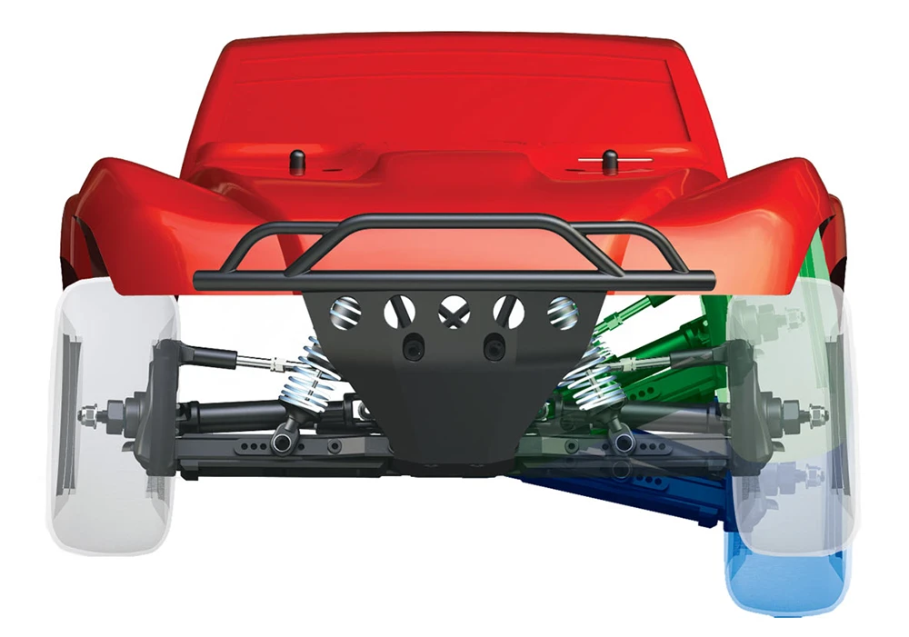 The Slash’s ultra-plush suspension swallows up jumps and delivers incredible rough-track control. All that travel gives Slash 4X4 a truly authentic look and handling response that accurately simulates real-world short course racing. The fully-optimized front axle carrier is a result of computer modeling that allowed engineers to design for maximum articulation without binding or interference. Tight steering response is always there, even at the extreme ranges of the suspension travel.