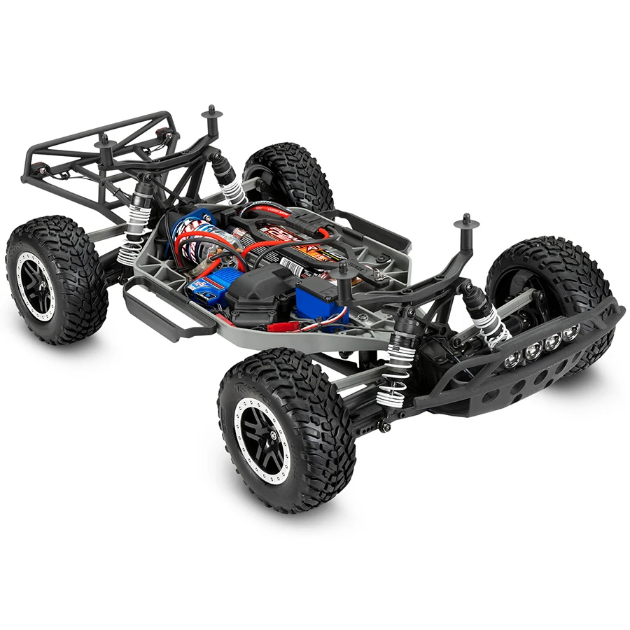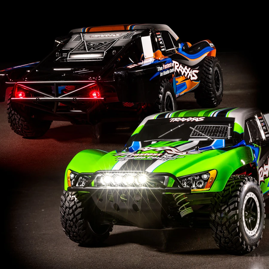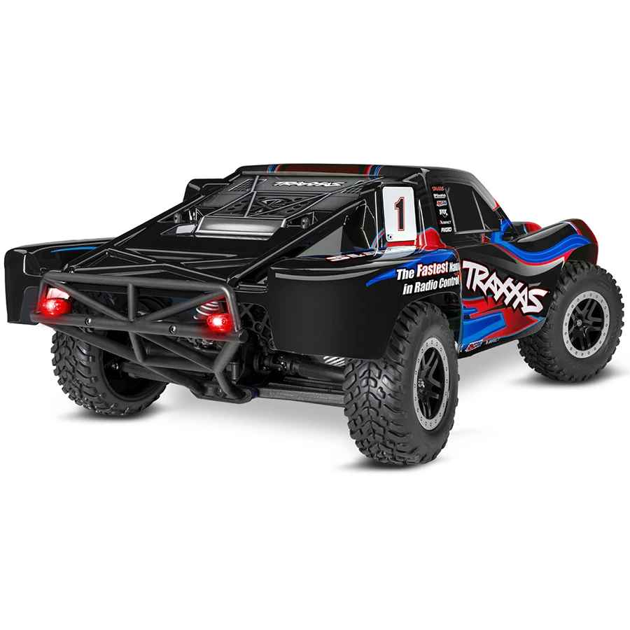 The Traxxas Slash set the standard for durability, performance, and fun by which all other short course trucks are measured. Outfitted with the powerful Titan 12T 550 motor and bulletproof reliability of the XL-5 electronic speed control, the Slash takes on any high-flying, fender-banging, adventure you can throw at it. Waterproof electronics keep the fun going through wet weather conditions and LED lighting extends your driving fun after dark. Grab your transmitter, rip some 4-wheel roost, and discover why nothing else is built like a Slash!