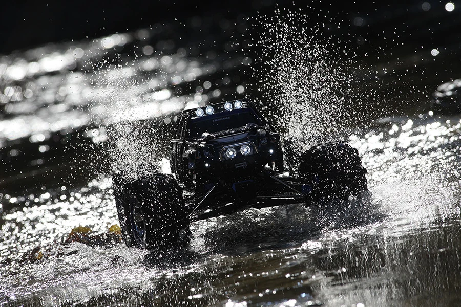 Summit is the latest truck to feature Traxxas’ exclusive waterproof electronics. This exclusive Traxxas innovation opens the door for driving fun in water, mud, snow, and other wet conditions that stop others dead in their tracks. The patented waterproof electronics box allows the installation of your own radio system without losing the watertight properties.
