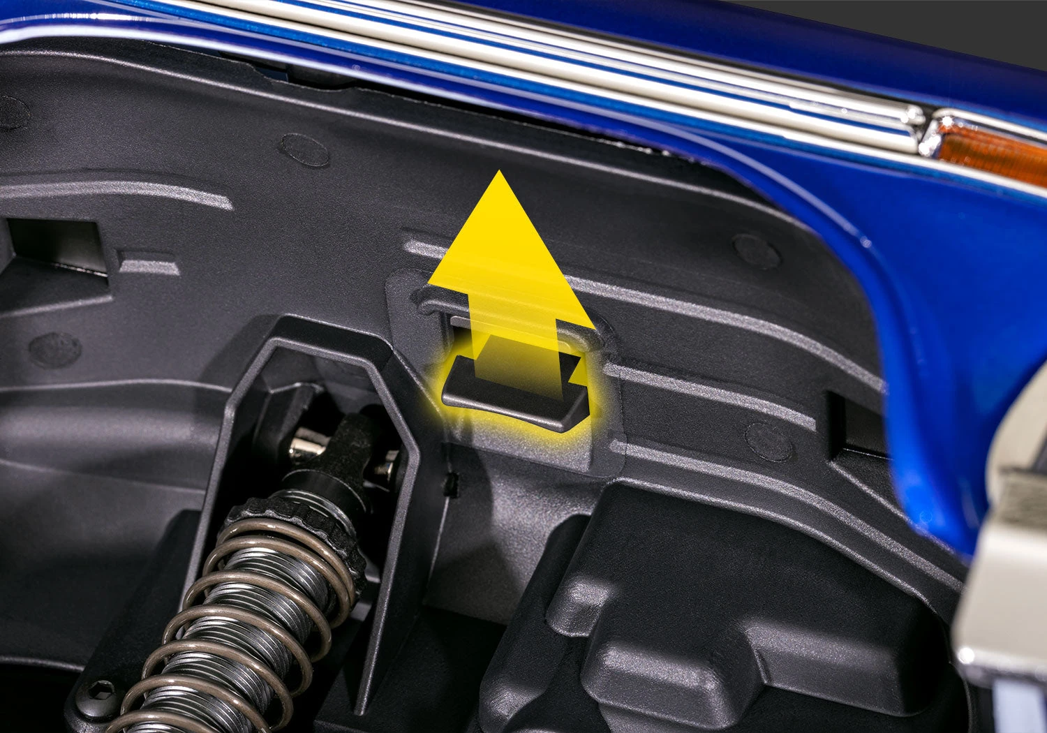 The clipless body’s hidden latching system gives F-150 High Trail Edition clean, flowing lines for new level of scale realism and convenience. On the trail, F-150’s clipless body holds tight when you need it, but releases in just seconds to access the chassis.