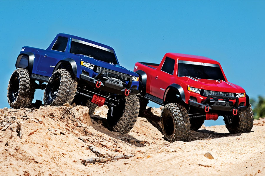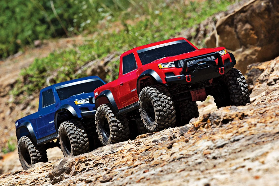 The TRX-4 Sport combines the unbeatable ground clearance and driving dynamics of Traxxas portal axles, sticky Canyon® Trail tires, and a lightweight pickup truck body for a leaner, performance-focused new TRX-4. The Sport’s unique bumpers, wheels, and body were designed for increased climbing versatility.Â