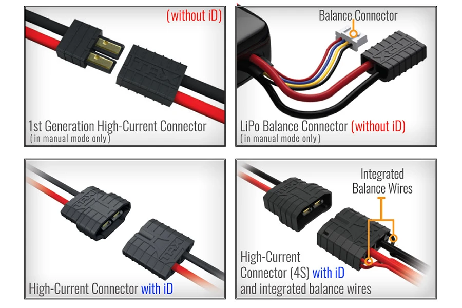 • Recognizes Traxxas iD® batteries to automatically program and optimize charger settings