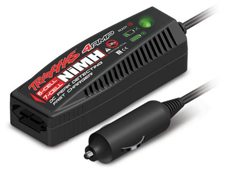 The Traxxas 4-amp peak detecting fast charger uses a 12-Volt DC power outlet for charging in the field. The brilliant LED provides charging status while the battery charges. The peak-detecting charger is optimized for charging Traxxas Power Cell NiMH battery packs. Just plug the a Power Cell battery in for a perfect charge, run after run.