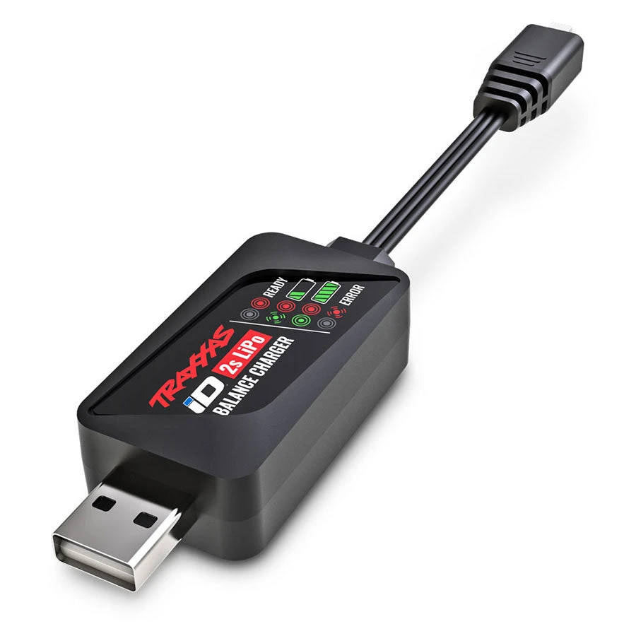 Use the 2-amp USB-A fast charger with your Power Cell 2s 2821 LiPo battery for fast and easy charging almost anywhere. Traxxas iD® technology delivers the perfect charge with no guesswork. Just plug the iD battery in and the charger does the rest. When the LED light turns green, the battery is charged.