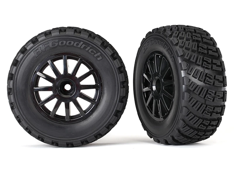 The TSM rated Gravel Pattern Tires and Wheels are a replacement part for the Traxxas Ford Fiesta ST Rally car.