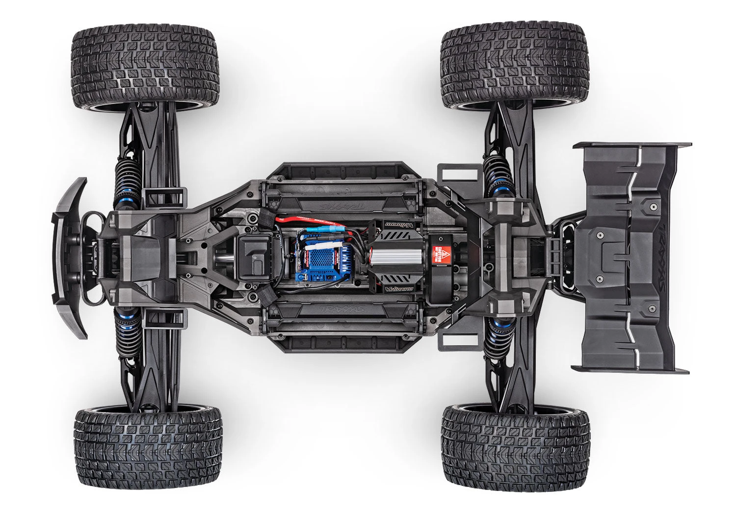 XRT’s performance-focused chassis design is configured to lower the center of gravity for superior handling and stability. The dual 6700 4s batteries and the steering servo are positioned to place the weight as low as possible in the chassis and provide protection for these critical components.